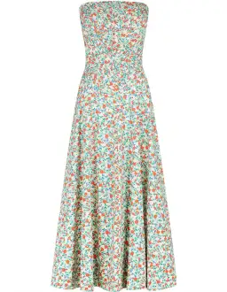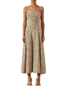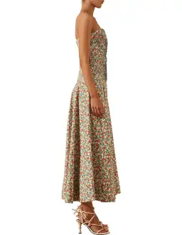 Shona Joy Ulani Strapless Pleated Midi Dress Floral Size 8