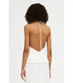 A fresh fabrication this season ~ the Agatha Top in Porcelain is crafted from a sheer woven georgette fabrication. Complimented with a soft cowl neckline, open back detail and adjustable halter tie. A textured spot pattern has been added throughout this design.