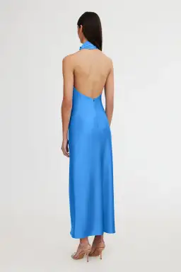 An elegant addition to the collection, the Darcy Backless Dress in Azure is perfect for your events this season. Collared neckline, button closure and plunging backline for a feminine finish. Perfect for bridesmaids, pair with a simple heel for a complete look.