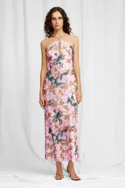 Crafted with the event season in mind, the Louisa Midi Dress in Midnight Lily is a stand out. The perfect piece to take you from day to night, featuring subtle front bodice cut out detail, halter neckline, open back and invisible back zip. Pair with a simple heel for a complete look.