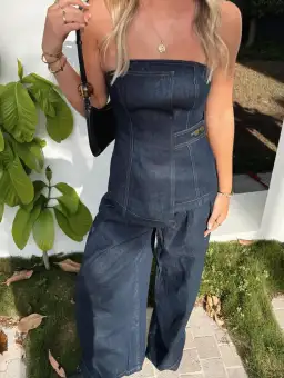 The Micah Top in Indigo is made for fashion enthuisasts. Designed with a structured silhouette and statement detailing, this top features a faux wrap front with metal button accents and is finished with contrast topstitching. A center-back metal zipper closure ensures a sleek fit, making it the perfect piece to pair with matching Micah Pant in Indigo. The high-waisted, wide-leg silhouette is elevated with front pleats, an angled waistband, and structured denim for a flattering fit.
