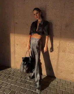 Silk Laundry Shirt and Bias Cut Pants Set Smoke Size M/Au 10