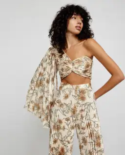 One sleeve design, signature pleated fabrication and twisted detail across the bodice for a flattering finish. Pair with the Simone Pant for a complete look.