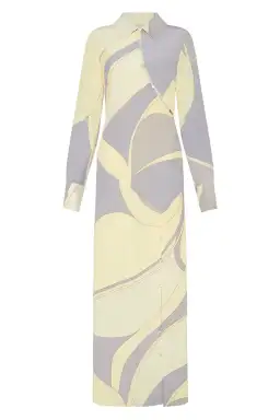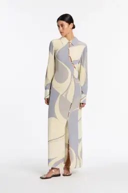 Defined by the asymmetric shape, the Adriana Shirt Dress features subtle skin-baring cutouts and metal buttons. Cut from a silk fabric in an exclusive abstract print, offering a relaxed fit through the body. Unbutton the skirt to reveal a high split and pair with heels for a modern look.Lots of buttons to to show as much or as little skin as you like.