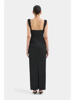 The Azul Balconette Gown in black is a feminine and modern dress, ideal for any special occasion. It features ruched straps, a bustier, back split and tucks through the body for a tailored look. Crafted from an Italian cotton fabrication offering ruching through the waist to ensure a flattering fit.