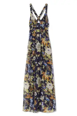 An updated silhouette of the signature SIR. cross back dress, cut in lightweight linen/silk in their exclusive Delia print.