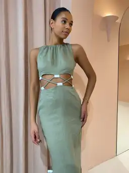 Sir the Label Mayra Deconstructed Maxi Dress In Sage Size 6