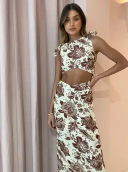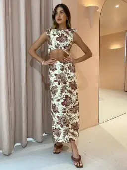 The nostalgic royal paisley print of the Rei Midi Skirt in Citrus Lilium by SIR. has us daydreaming of tropical paradise escapes and glamorous twilight soirees. Luxurious in print and fabrication, the Rei Midi Skirt is crafted from a linen fabrication in a sophisticated neutral hue.