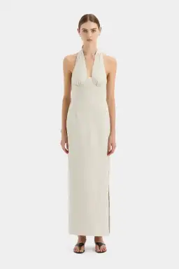 SIR THE LABEL AFFOGATO HALTER DRESS ECRU SIZE 2