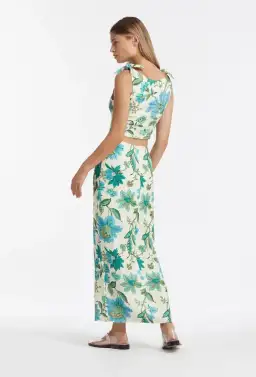 A natural linen statement skirt featuring Sir's signature floral Alexandre print.