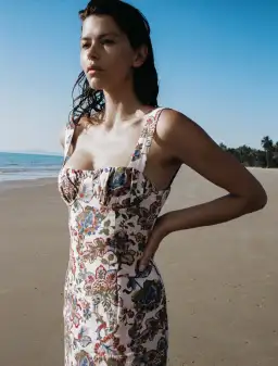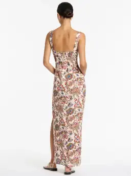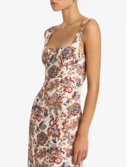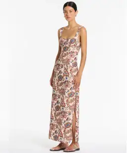 The Bettina midi dress is a feminine style crafted from a midweight linen fabric in a SIR. exclusive floral print. Offering a relaxed, flattering fit with panel lines, ruched detail at the cups and a side split.