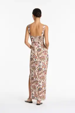 The Bettina midi dress is a feminine style crafted from a midweight linen fabric in a SIR. exclusive floral print. Offering a relaxed, flattering fit with panel lines, ruched detail at the cups and a side split.