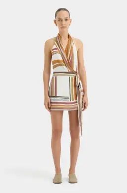 The Caprera Wrap Halter Mini is a modern silhouette, crafted from a silk fabric in our exclusive Milazzo Stripe Print. Designed with a softly draped shape that wraps around the waist and an open back.