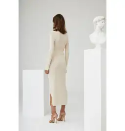 An rib long sleeve midi dress featuring a cross over front to drape over waist and reveal cut outs at side.