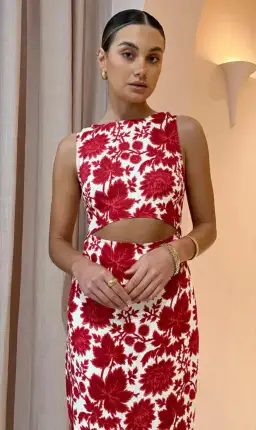 This linen midi dress is an effortless silhouette featuring a cutout at the front, crafted in our exclusive Valentina floral print.