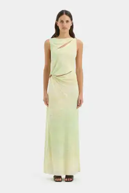 The Citterio Gown is made from a lightweight silk viscose with a matte finish, finished in an exclusive SIR. print. Designed for a fluid drape, it features an asymmetric neckline, bead details at shoulder and hip, and subtle cut-out accents.