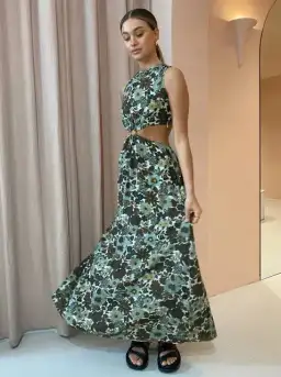 Sir the Label Constantine Cut-Out Midi Dress in Green Floral Size 1/ AU 8