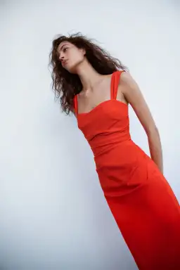 A feminine and modern dress, ideal for any special occasion. It features wide straps, an underwire bustier detail, back split and tucks for a gathered finish through the body. Crafted from an Italian cotton fabrication offering ruching through the waist to ensure a flattering fit.