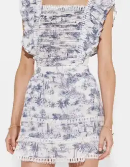 Sir The Label Dahlia Linen Ruffle Mini Dress Blue Palm Tree Print Size AU 12