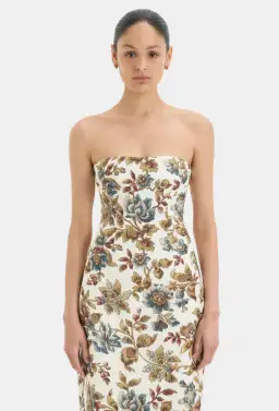 An effortless strapless silhouette, offering a flattering fit. Crafted from a linen fabric in the SIR exclusive Viola print, drawing inspiration from palazzo wallpapers and intricate filigree florals, featuring panel lines, a shaped bust and back split detail. Slide on with sandals for an elevated everyday look.