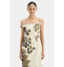 The Evalita Twist Midi Dress is an event-ready style crafted from our signature linen, in a SIR. exclusive print inspired by autumnal foliage with painterly leaves. It features an off-shoulder neckline, twisted straps and a softly tucked waist that gives way to a mid length hem. Pair back with heels for your next event.
