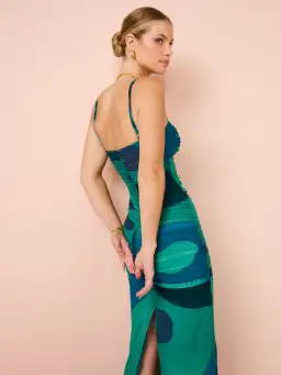 Created in collaboration with artist Frankie Tobin, this midi is an alluring mesh masterpiece crafted from a fabric boasting a playful print exploring organic shapes moving through the natural world.