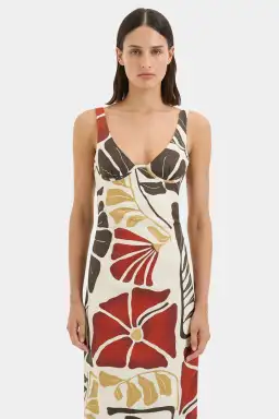 The Julietta Balconette Midi Dress is crafted from our signature midweight linen in a SIR. custom floral print. It features a supportive underwire bodice, wide shoulder straps, tucks through the body and side split for ease of wear.