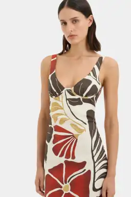 The Julietta Balconette Midi Dress is crafted from our signature midweight linen in a SIR. custom floral print. It features a supportive underwire bodice, wide shoulder straps, tucks through the body and side split for ease of wear.