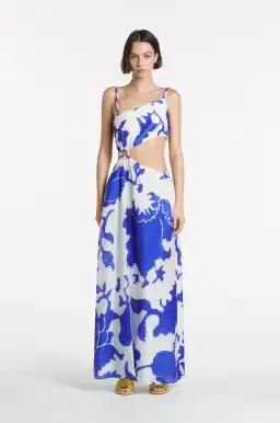 Sir The Label - Marlowe Vivi Asymmetric Cut Out Dress Blue Print