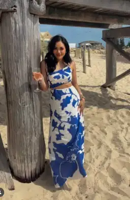Sir The Label Marlowe Vivi Asymmetric Cut Out Dress Blue Print Size 1/AU 8