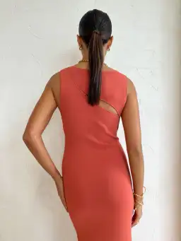 Add a burst of colour to your evening wear repertoire with SIR's Nadja Cut Out Midi Dress in Coral.Crafted from a form-fitting mid-weight knitted fabrication, this sleeveless midi dress features asymmetrical cutouts and a round necklineCoveted for its sculpting silhouette and versatility, it can be worn reversibly to offer more coverage throughout the front.