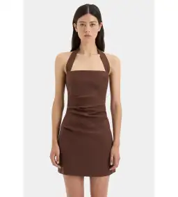 Sir The Label Noemi Halter Mini Dress in Chocolate Size 0P / 6PETITE