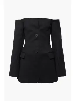 The Sandrine Tailored Mini Dress is a modern dress, crafted from a premium Italian suiting fabric. Inspired by the shape of a blazer, this style offers an off-shoulder fit with a single breasted design, punctuated waist, and front welt pockets. Featuring an internal corset to provide a structured look, pair yours with heels for your next occasion.