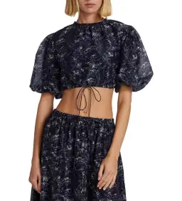 Sir The Label Caprice Puff-Sleeve Cropped Top and Maxi Skirt Set Navy Floral Size 0/AU 6