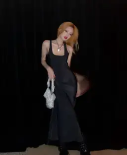 The Soleil Midi Dress by SIR is a black midi dress, bias cut in sand-washed silk. Features split at the side, finishing below the knee.