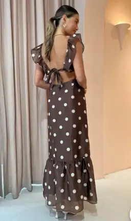The Vivi frill maxi dress is a SIR. classic silhouette midi dress crafted in a lightweight silk/cotton. Featuring a ruffle plunge neckline with front cut outs through the waist and an open back detail to create a feminine edge.