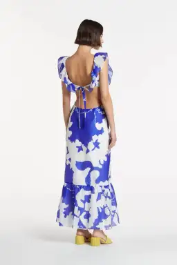 Sir the Label Vivi Frill Maxi Dress Blue Print