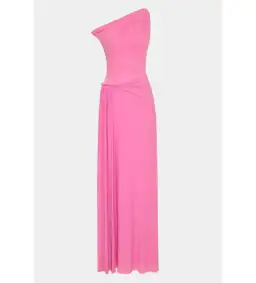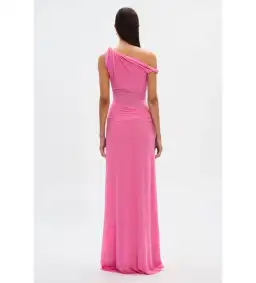 The Sisal Mesh Maxi Dress in Orchid Pink, a captivating blend of elegance and allure. Designed with a flowing, draped silhouette, this maxi dress effortlessly skims the body, creating a striking yet refined look. The asymmetrical design exudes a goddess-like charm, while the twisted off-shoulder detail adds a modern touch.
