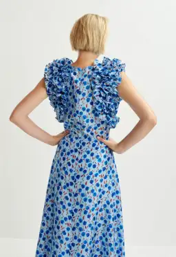 The Hexico Floral Print Midi Dress by Essentiel is crafted from 100% silk and features a fitted bodice that falls into an A-line skirt, creating the most flattering fit. Delicate ruffles on the shoulders adds a touch of sophistication, while the hidden zip fastening ensures a seamless finish.