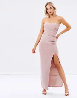 Skiva Strapless Evening Dress with Split Latte Blush Size AU 6