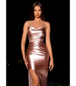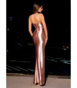 A gorgeous full length dress by Nicoletta NC2048. Featuring a sweetheart neckline, spaghetti straps and a pencil skirt.