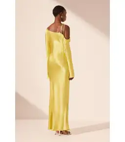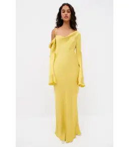 Shona Joy Sofia Asymmetrical Long Sleeve Maxi Dress Lime Size AU 8