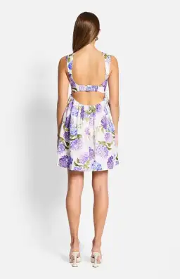 Experience the allure of summer with the Sofia Kaia Open Back Mini Dress in Hydrangea.