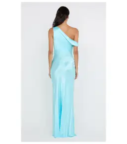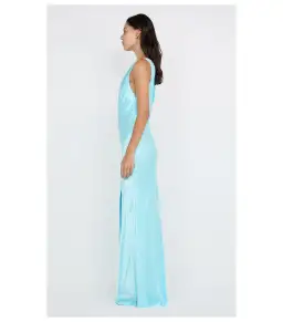 The BEC + BRIDGE Sol Asym Dress in Turquoise is a sophisticated maxi dress with an asymmetrical neckline and bias cut that flatters the figure. Featuring bust darts and a mid-thigh split, it offers a sleek, modern elegance. Finished with a narrow rolled hem and pull-on styling, this dress is perfect as a bridesmaid dress, for special events, or formal occasions. Pair it with the BEC + BRIDGE Kate Heel for a polished, elevated look.