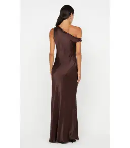 The BEC + BRIDGE Sol Asym Dress in Dark Chocolate is a sophisticated maxi dress with an asymmetrical neckline and bias cut that flatters the figure. Featuring bust darts and a mid-thigh split, it offers a sleek, modern elegance. Finished with a narrow rolled hem and pull-on styling, this dress is perfect as a bridesmaid dress, for special events, or formal occasions. Pair it with the BEC + BRIDGE Kate Heel for a polished, elevated look.