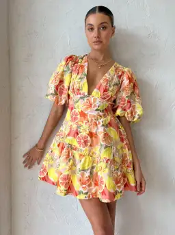 By Nicola Sol Puff Sleeve Mini Dress in Citrus Print Size 6
