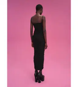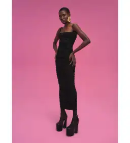 Solace London Adler Ruched Black Midi Dress Size AU 8 /US 4