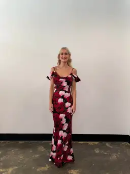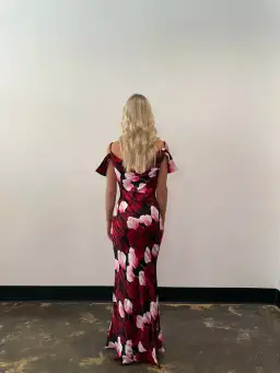 The Rosalie Dress is a captivating blend of elegance and modernity. Featuring a cowl neckline and off-the-shoulder design, this mermaid silhouette dress is crafted with a bias cut for a flattering shape, complete with adjustable shoulder straps and a side zipper closure.