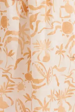 - Tropical-inspired print; neutral-toned base