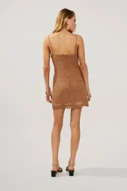 From the beachfront to night drinks" this new R20 Simone Kaftan Mini Dress is a perfect trans-season must-have for your wardrobe. Designed with see-through details and neutral colouring to pair with any bikini underneath. Loose sleeves and detailed" crochet waist created shape and difference.